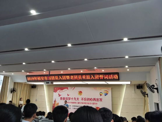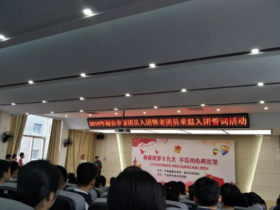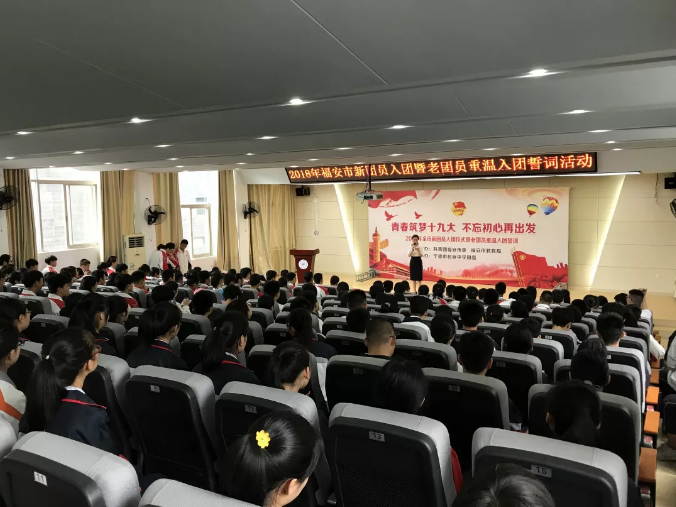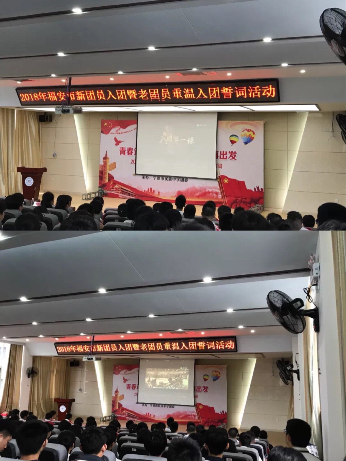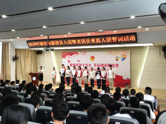 5月3日上午,由福安市教育局和团市委主办、宁德市民族中学团委承办的“青春筑梦十九大,不忘初心再出发”2018年全市新团员入团仪式暨老团员重温入团誓词活动在宁德市民族中学阶梯教室会议室隆重举行。我校新团员代表与来自福安城关各中学的新团员代表参加宣誓活动。