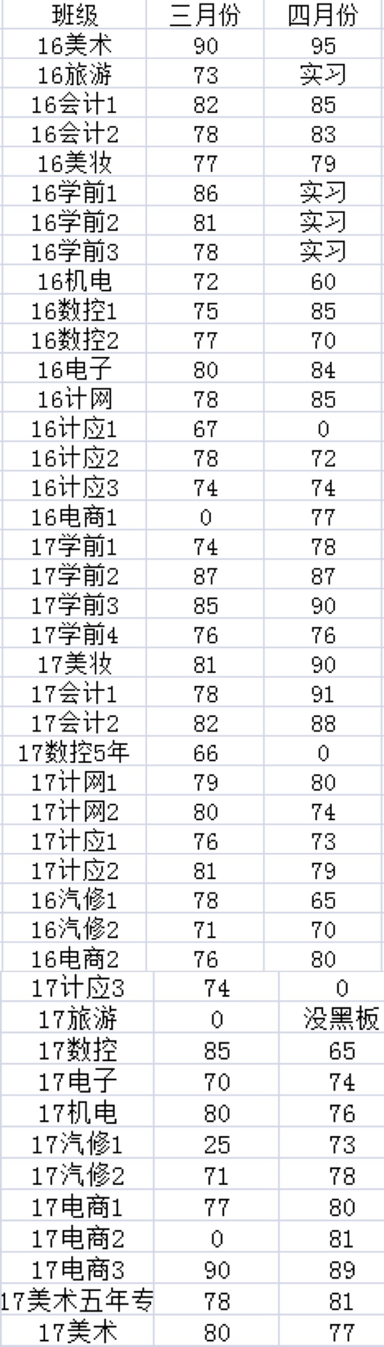 四月份黑板报评比情况