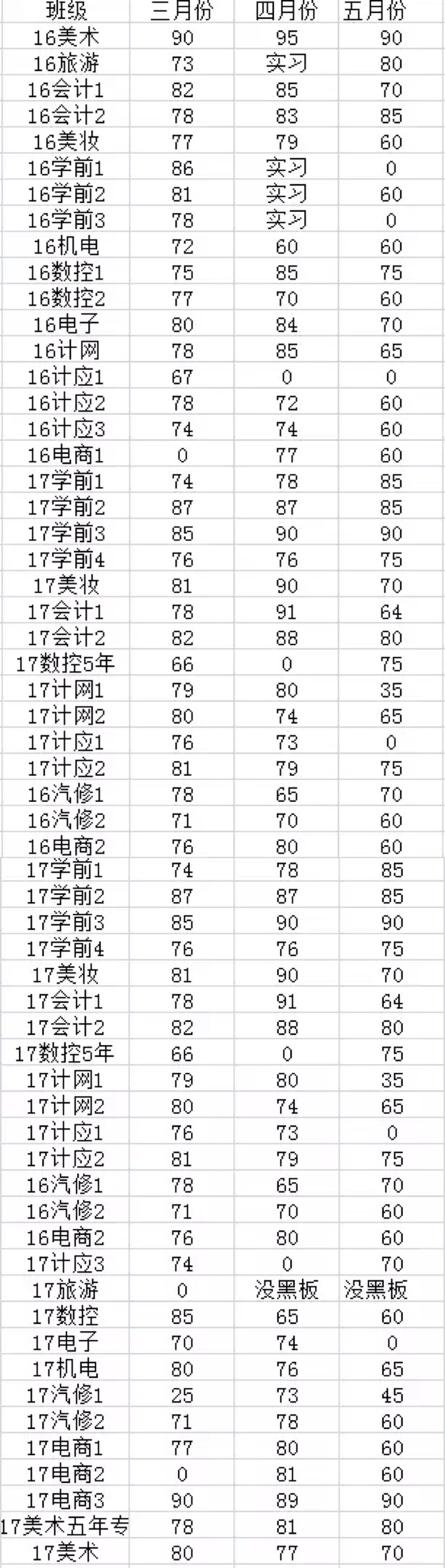 五月份黑板报评比情况