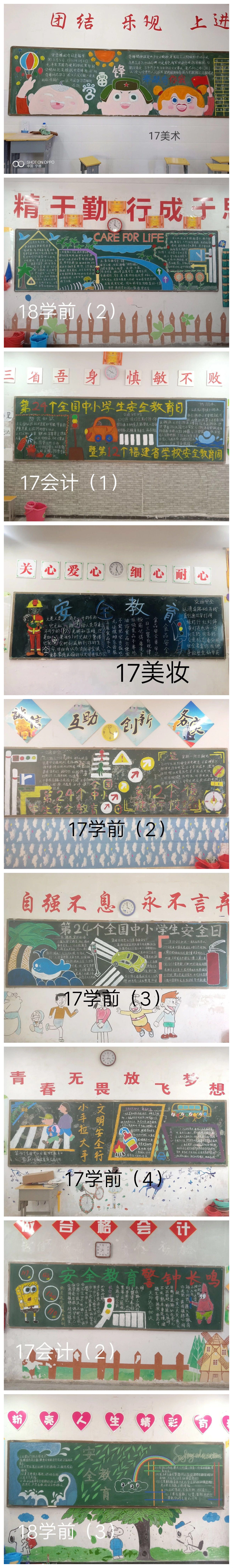 个福建省学校安全教育周、预防春季传染病、学雷锋”为主题的黑板报。
