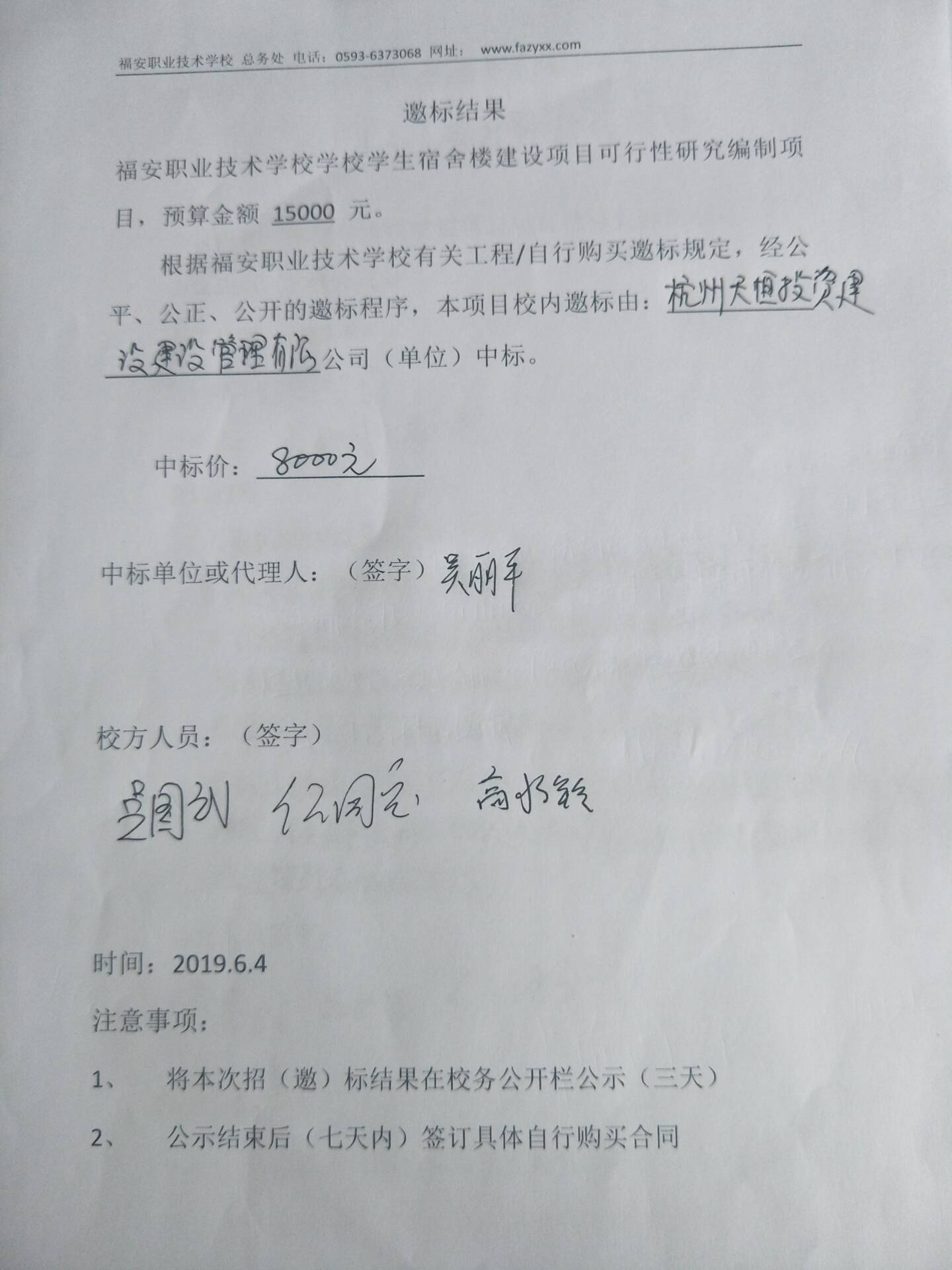 福安职业技术学校学生宿舍楼建设项目可行性研究报告编制邀标结果公示