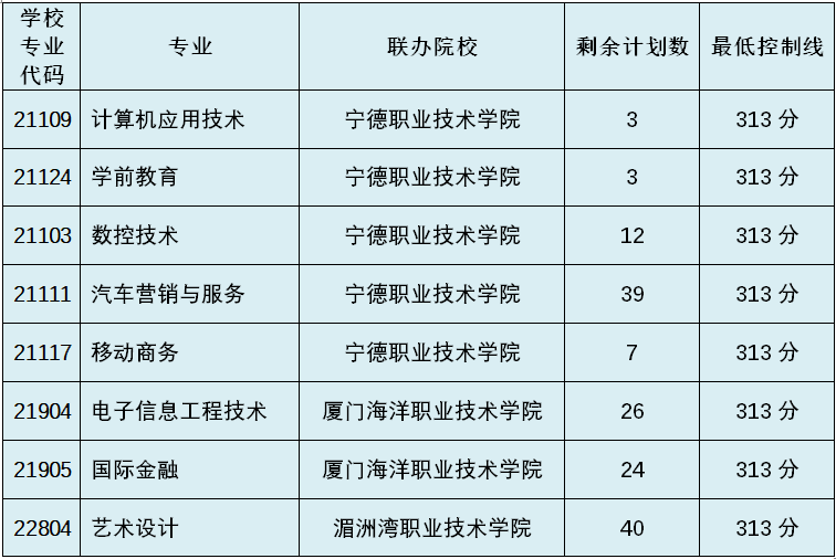 福安职业技术学校五年专各专业剩余计划数