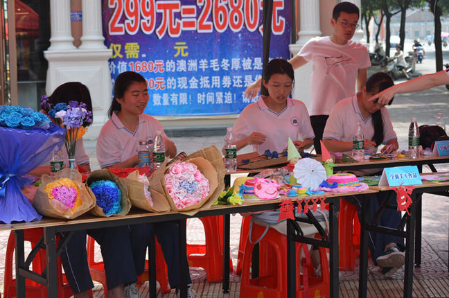 5月20日上午我校在安居罗马广场展示师生职业技能、为民技术服务、宣传招生政策、宣传职业教育等活动。