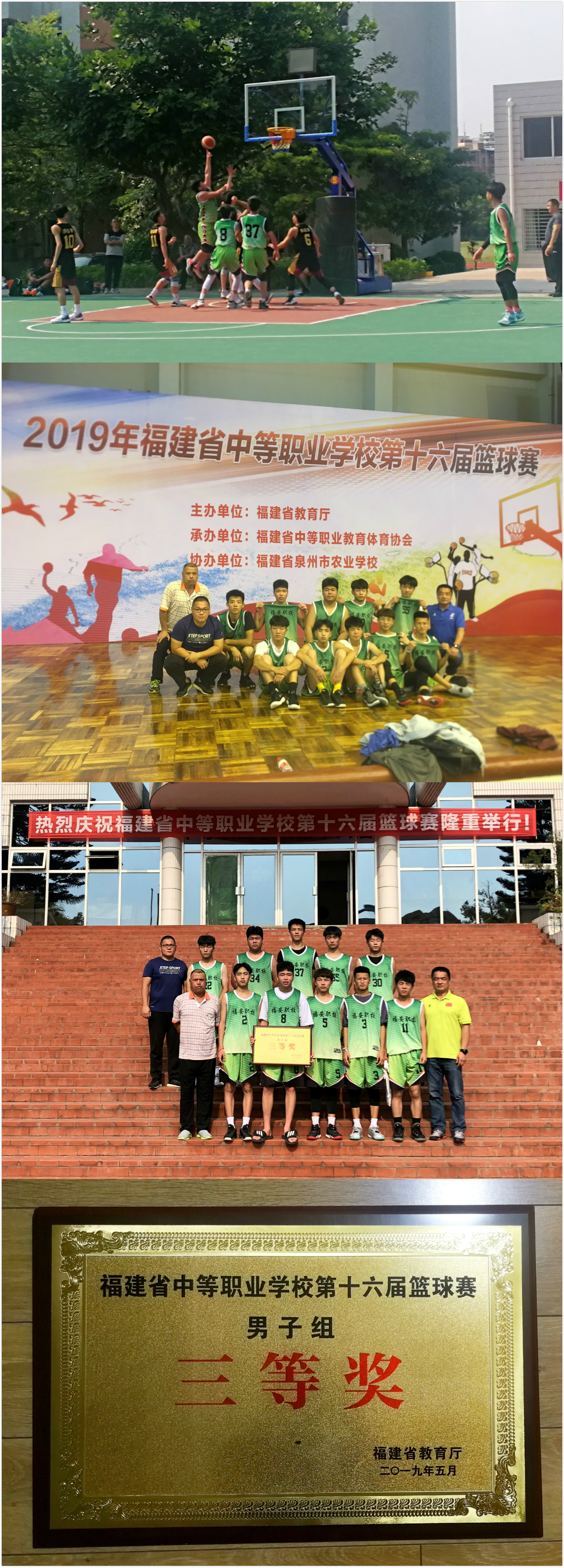 年福建省中等职业学校第十六届篮球赛中,福安职业技术学校篮球队荣获三等奖。