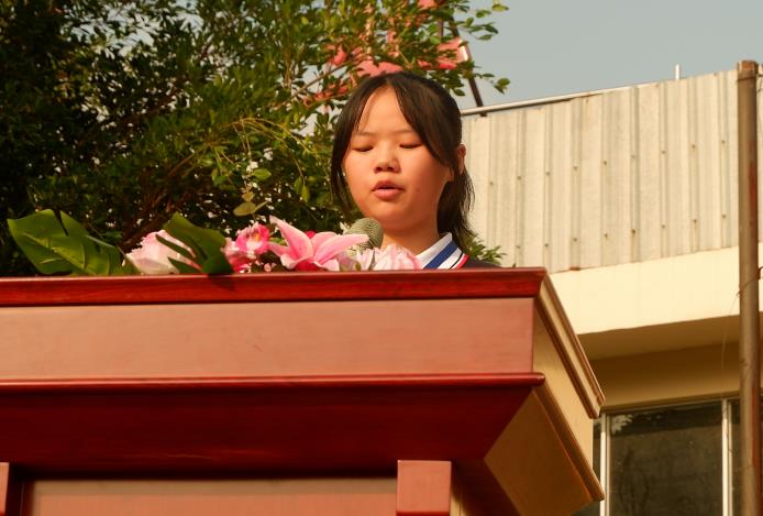 第二个环节:学生代表18学前(1)班谢建芳发言。她表达了在新学期要以饱满的热情迎接新的挑战,寻求新的发展,为福安职校的完美未来做出自己应有的贡献!