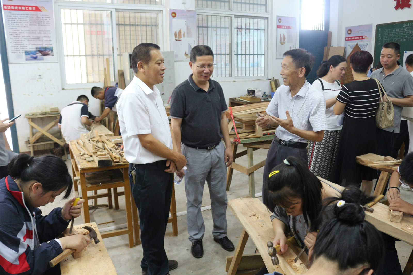 随后,调研组一行参观了福安市级非物质文化遗产保护项目传统木帆船制作技艺代表性传承人郑文祥老先生在学校的工作室和示范校船舶实训室。
