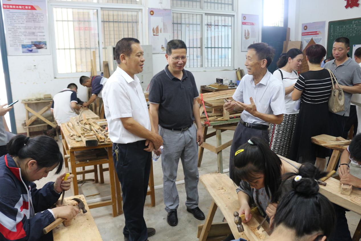 福安市人大委员会党组副书记、副主任刘宗奇2020年7月到校调研福安市级非物质文化遗产保护项目传统木帆船制作。