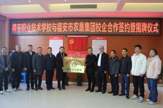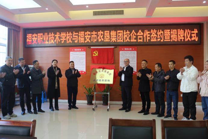 最后,双方在我校举行“福安市农垦集团人才培养基地”和“福建省福安职业技术学校校外实训基地”揭牌仪式。