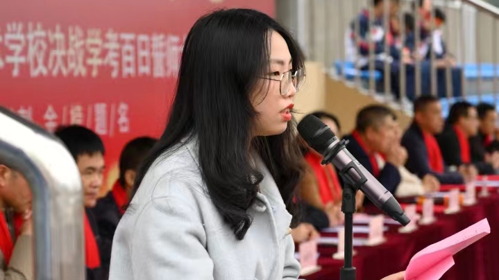 少年当有鸿鹄志,当骑骏马踏平山。王美铮同学作为学生代表发言,她激励同学们要以高昂的斗志,百倍的信心,坚定的意志,扎实的基础,全身心地奋战学考。