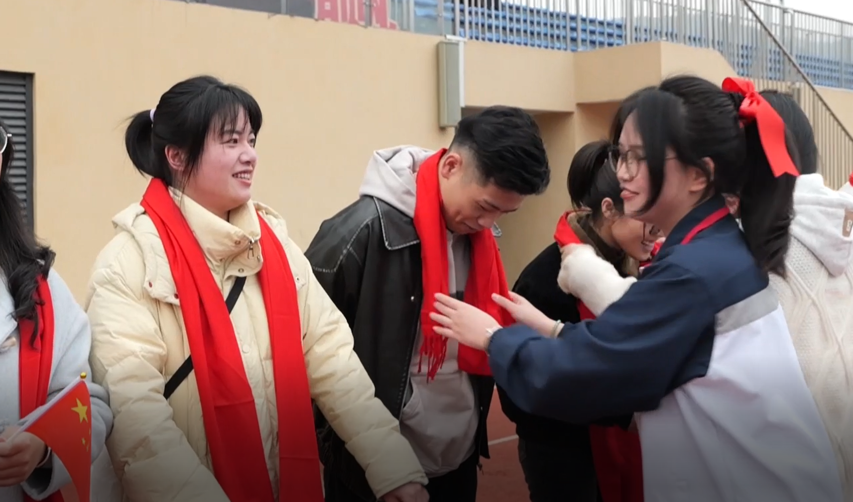 谢师恩环节,各班学生代表为亲爱的老师们献上红围巾,一条条红围巾表达着同学们对老师们的敬意和感激之情。随后,22级全体班主任们用带有典型学科特色的祝福,表达了对学子们的深情祝福和诚挚期望。