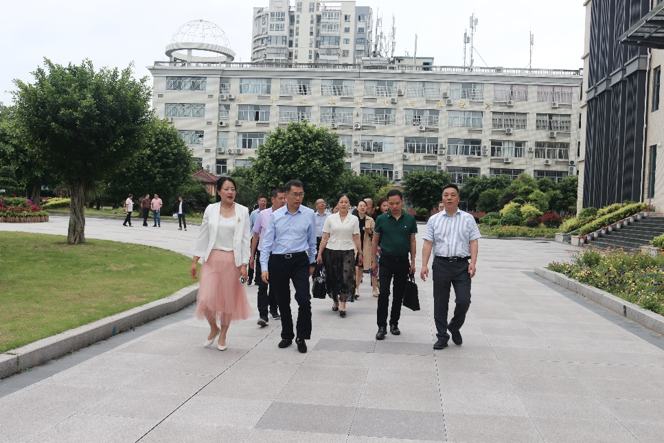 调研组一行走访校园,听取黄小刚书记和曾柳娟校长关于学校办学情况汇报,参观学校新扩建的学生宿舍楼、田径场,走进学校的实训室,了解学生实训情况,充分肯定对学校的实训管理和成效。