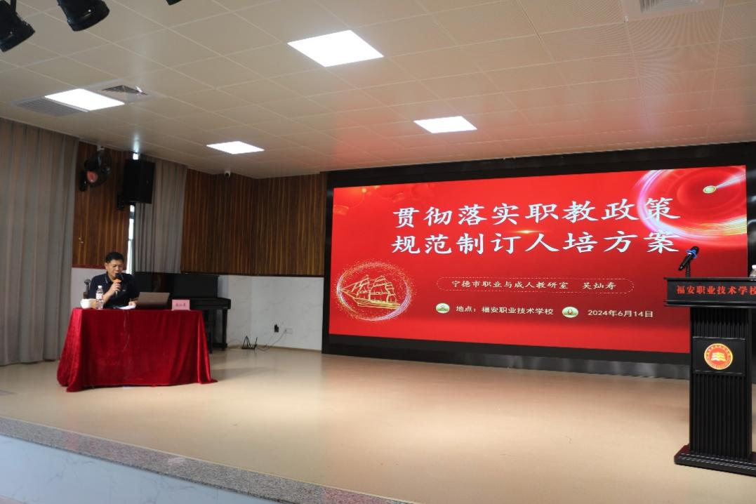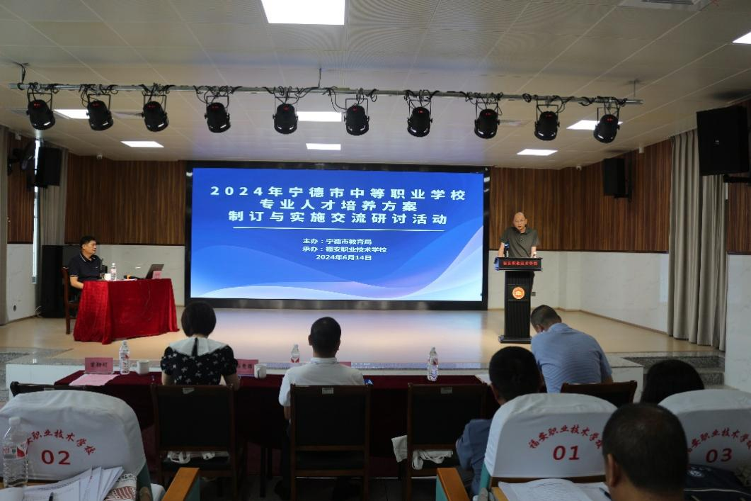 根据福建省职业技术教育中心《关于开展2024年全省职业院校专业人才培养方案制订与实施情况检查评价工作的通知》(闽职教中〔2024〕10号)要求,为确保我市职业院校专业人才培养方案制订与实施符合上级有关要求,宁德市教育局主办的“2024年宁德市中等职业学校专业人才培养方案制订与实施交流研讨活动”于6月14日上午在福建省福安职业技术学校成功举办。活动汇聚了宁德市教育局副局长余淼、职成高教科科长谷曼菲、职成教研室主任吴灿寿等领导,以及各中等职业学校分管教学副校长、教务处和教研室负责人、专业组长代表等60余位教育工作者。此次研讨活动由吴灿寿主任主持。