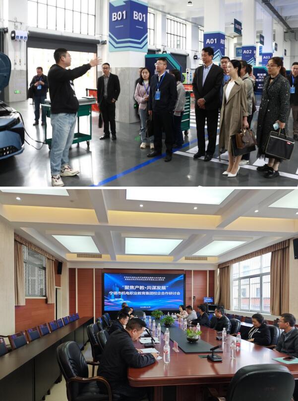 全体会议结束后,与会代表参观了智能汽车实训基地、智能制造理实一体化实训中心和虚拟仿真实训室,现场观摩了学生技能展示。同时,部分代表参加了校企合作研讨会,围绕岗位标准对接、现代学徒制推进、技术共研等话题进行了深入交流。