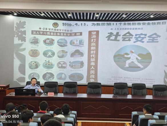 福安公安民警紧扣总体国家安全观,用贴近校园的真实案例剖析毒品陷阱,以 110 接处警故事讲解电信网络诈骗防范要点与正确报警方式,播放警示教育片强化反邪教意识,让抽象安全知识变得具象易懂。同时,民警向师生传递“全民共守国家安全、携手守护家园”的理念,倡导大家主动参与国家安全宣传,带动家人、朋友共同提高防范意识,凝聚起全民护安、共筑家园防线的强大合力,让国家安全理念融入日常生活的每一个角落。