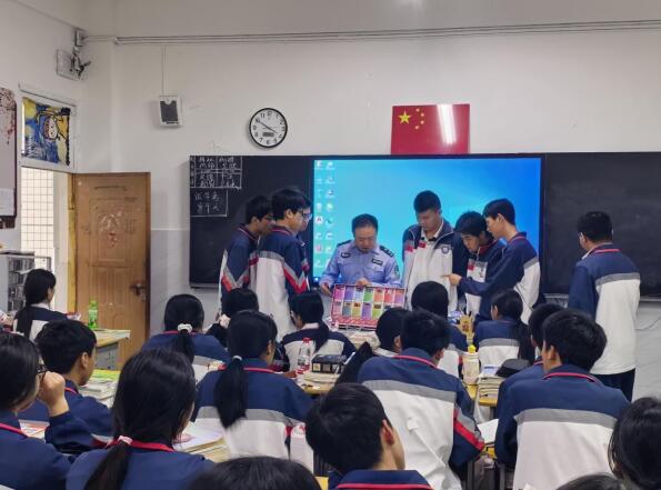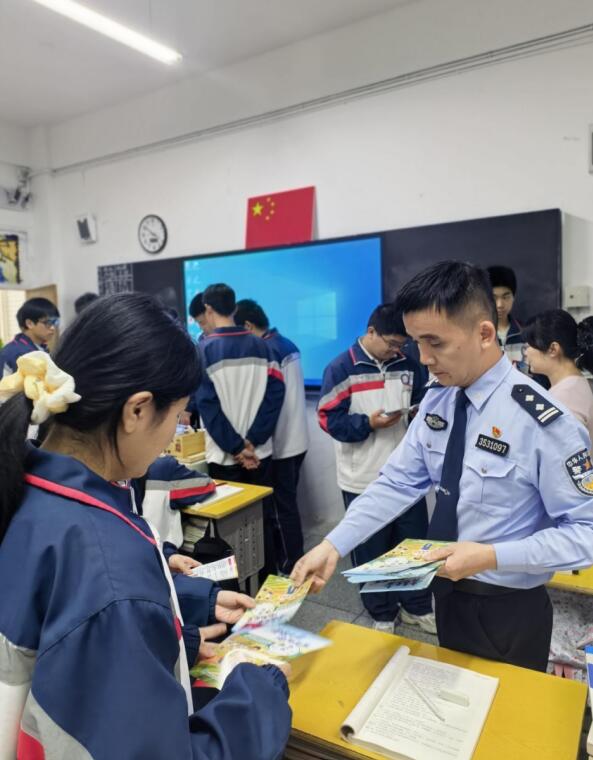 讲座结束后,民警们深入各班级课堂,开展延伸宣讲,结合班级学生特点,用更具针对性的语言普及安全知识,同时向学生发放禁毒反诈、反邪教、国家安全等主题宣传传单,手把手讲解传单内容,确保安全知识覆盖更多学生,让每一位同学都能了解危害、掌握技巧、增强防范。