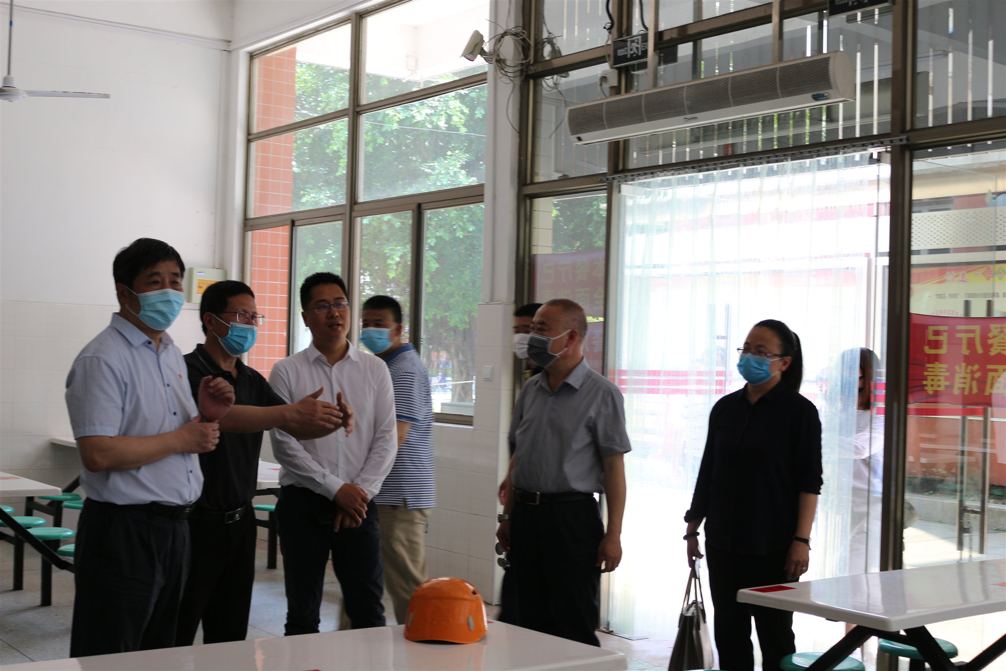 李副厅长一行实地察看了校门执勤点、测温通道、食堂、学生宿舍、医疗室等场所,详细询问复学后学生疫情防控、学生就餐等流程。