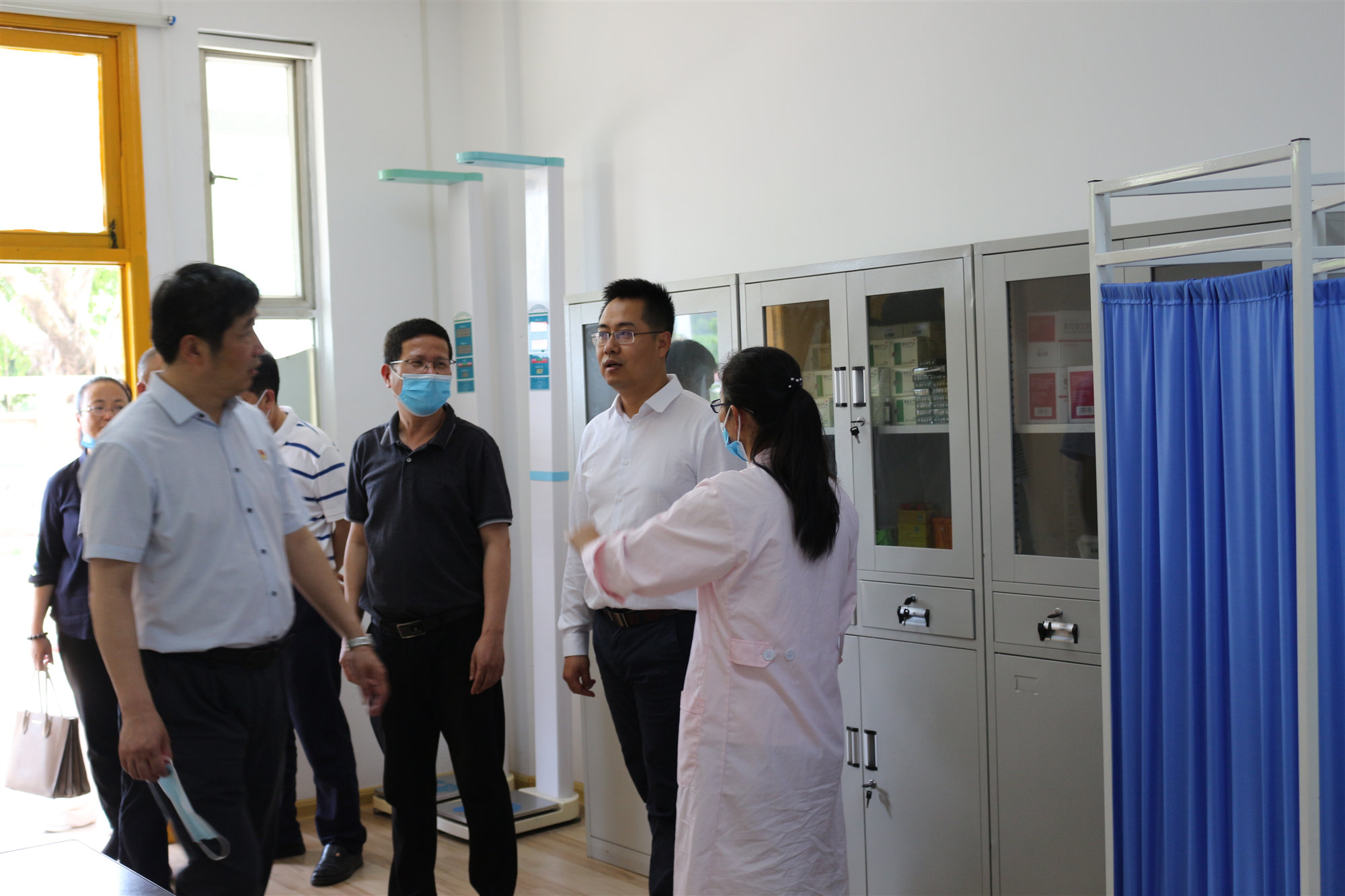 李副厅长一行驻足校医疗室与校医亲切交谈
