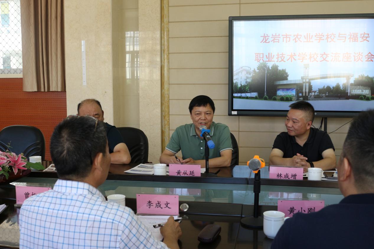 随后,黄从廷对福安职校的热情欢迎和周到安排表示感谢,对学校近年来取得的办学成就给予了高度评价,认为我校办学特色值得研究和学习,同时介绍了龙岩市农校的办学情况,并希望今后与我校有更多的交流合作,促进专业群和学科建设建设,为学生未来成长开拓更广阔的空间,共谋更好的发展与进步。