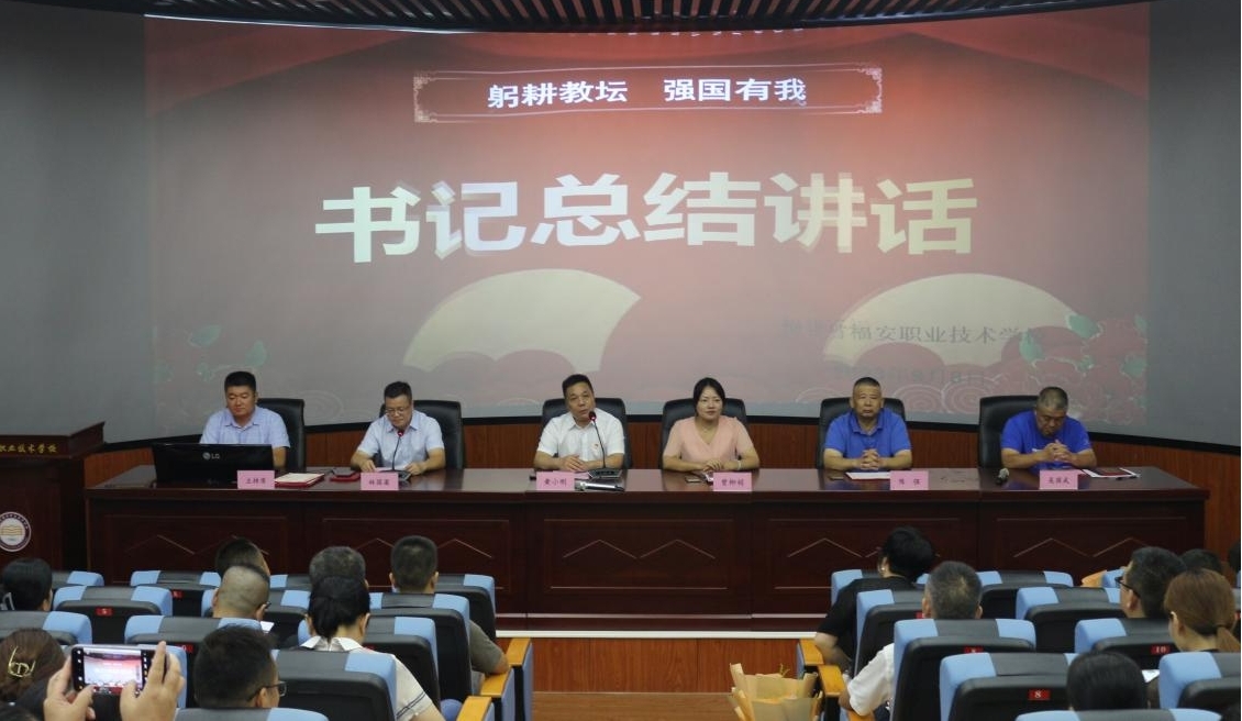在大会的尾声,黄小刚书记代表学校党总支部向全体教师致以节日的祝贺,并表示作为职业教育者,要担负更重的使命。同时也勉励广大教师要争做“四有”好老师和“四个引路人”,积极投身到职业教育中去,为职业教育增添新的辉煌!