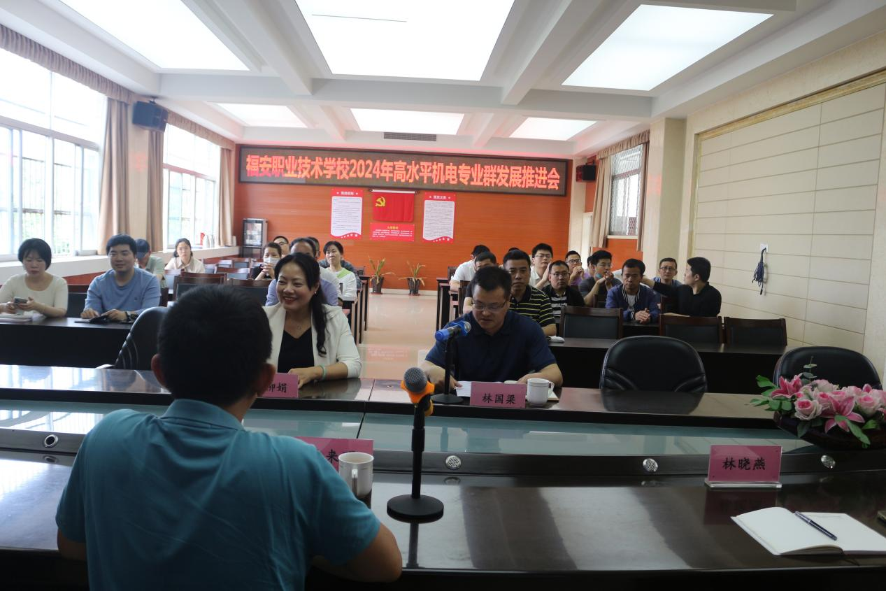 为推进我校高水平专业群建设任务中各项工作有序有效落实,进一步促进专业内涵的提升。4月23日下午,学校组织召开了专业群建设工作推进会。会议邀请了双高(厦门)教育科技研究院陈来明院长、双高(厦门)教育科技研究院特聘专家肖育发主任、双高(厦门)教育科技研究院咨询顾问林晓燕老师莅临指导。学校曾柳娟校长、林国梁副校长、招就处刘清生主任、教务处林挺主任、机电专业群全体教师参加了会议。会议在林国梁副校长主持下召开。