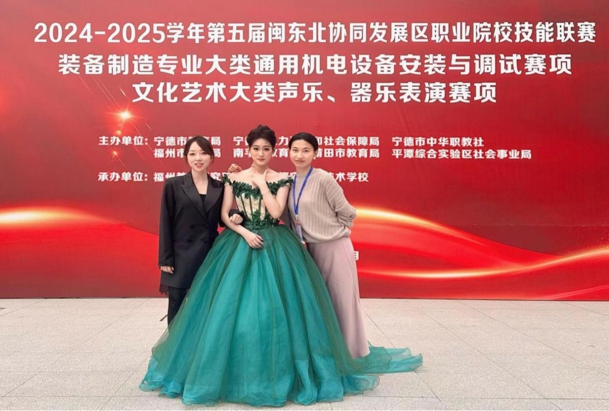 学校以技能大赛为载体,不断提升学生专业技能水平。在福建省职业院校技能大赛中,“通用机电设备安装与调试”项目林纬顺、刘煜杰荣获二等奖;“智能制造设备技术应用”项目陈坤华、胡顺翔获得三等奖;“短视频制作”项目钟志鹏(教师)、雷炜斌获得三等奖;“产品数字化设计与开发”、“电子商务运营”、“舞蹈表演”及“婴幼儿保育”项目9名学生均获得优秀奖。另外,学校还成功举办了2024-2025学年第五届闽东北协同发展区职业院校技能联赛的“声乐、器乐表演赛项”和“通用机电设备安装与调试赛项”,赛事组织严谨,获得了各级领导和参赛选手的一致好评。在2024-2025学年宁德市中职学校学生技能大赛(含四市一区联赛)中,学校共派出47名选手参与14个赛项的角逐,其中声乐、器乐表演和通用机电设备安装与调试赛项学校共7名学生荣获联赛一等奖;电子商务运营、婴幼儿保育、声乐、器乐表演3个项目共12名学生荣获联赛二等奖;移动应用与开发、短视频制作、艺术设计3个项目共5名学生荣获联赛三等奖;计算机基本应用技能和企业经营沙盘模拟赛项共5名学生荣获宁德市二等奖、1名学生荣获宁德市三等奖,总分排名闽东北协同发展区职业院校第一,创历史新高。