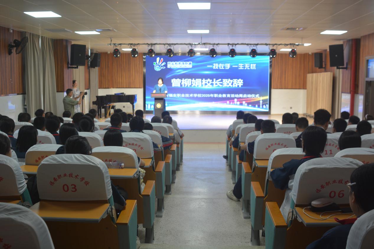 启动仪式上,校长曾柳娟发表热情洋溢的致辞,强调职业教育对强国建设的重要意义,回顾学校依托“专业链对接产业链”育人模式,在就业、升学、竞赛等方面取得优异成绩。活动周期间,学校将开展技能展示、产教融合、职普融通三大行动,展现“非遗 + 科技”特色,推动产业升级,打破职教认知壁垒。曾校长呼吁企业、家长、学生协同发力,共同弘扬技能成才风尚,为区域发展和国家建设培育高素质人才。