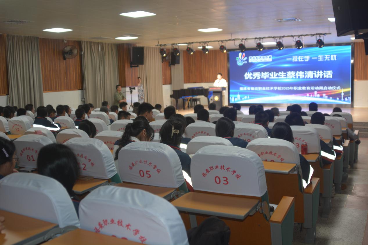 5月15日下午,福安职业技术学校2025年职业教育活动周启动仪式在新综合楼演艺厅隆重举行,校企代表、优秀毕业生代表、师生齐聚一堂,共启职教新篇。
