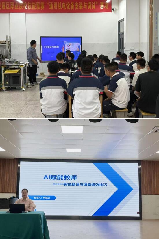 为推动人工智能与职业教育融合,提升教师数字素养,5月16日,由福安市教师进修学校主办、福安职业技术学校承办的2025年福安市中职学校“AI赋能职业教育教学改革与创新”主题教学教研开放活动顺利举行,活动旨在深化职教改革,促进教师智能化教学能力提升。活动涵盖电工基础、机械基础等多学科课堂教学观摩与研讨,钟斌辉、刘凯等多位教师带来精彩授课。当天下午,林巍立老师以《AI赋能教师:智能备课与课堂增效技巧》为主题开展专题讲座。福安市教师进修学校教研员及中职校教师参加活动。