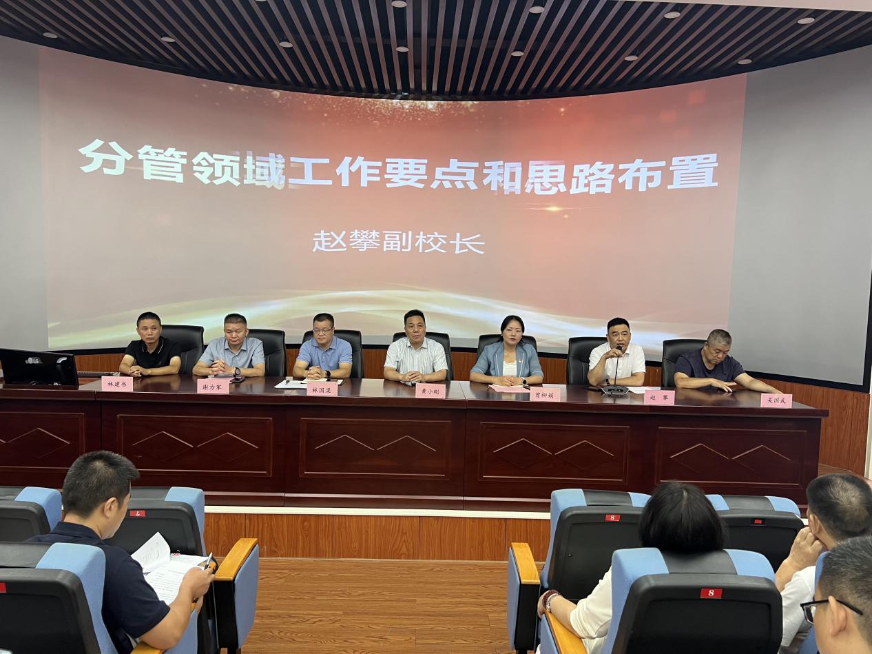 8月21日,校领导班子率先召开行政办公会议,坚持“提早谋划、系统部署、压实责任、确保安全”的原则,全面复盘上学期工作,系统规划新学期党建、教学、科研、安全、德育等重点任务。会议强调,要以争创国家级“双优校”为目标,深化教育教学改革,优化管理服务,推动学校高质量发展。