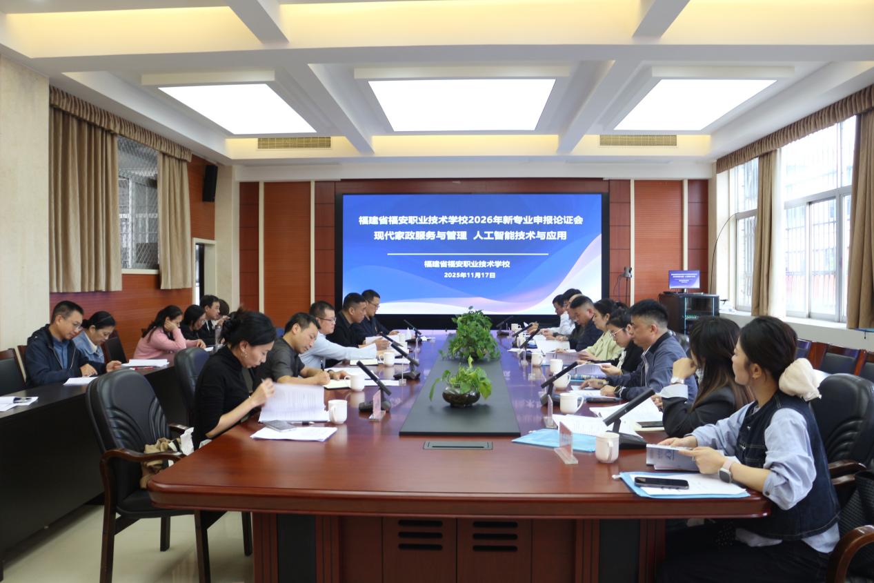 为精准对接区域产业需求,科学谋划专业布局,我校计划2026年新增2个三年制专业。2025年11月17日下午在实训楼二层会议室召开新专业申报论证会。本次会议由林国梁副校长主持,邀请宁德职业技术学院、福安市直属机关儿童学园、福安市五福圆健康护理服务有限公司、福安市安淼计算机有限公司、福安市三普办公设备有限公司等单位的9名行业企业专家组成专家组,教务处林挺主任、招就处陈泽华副主任、音乐组和计算机组骨干教师参加会议。