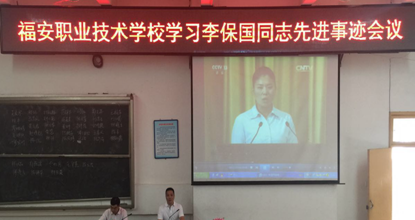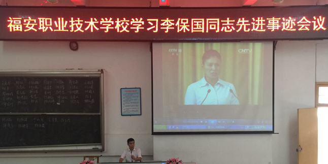 8月30日上午,开学第一天,福安职业技术学校全体老师集中在校梯教室观看李保国同志先进事迹报告会视频。报告从不同角度、不同侧面,回顾了35年来,李保国教授在邢台工作和生活的方方面面,讲述了他心系邢台人民,呕心沥血,用自己的科研成果帮助太行山区人民脱贫致富的感人事迹。整场报告会感人肺腑,发人深思,激人奋进,在全体教师中引起强烈反响,纷纷为李保国同志的感人事迹潸然泪下。