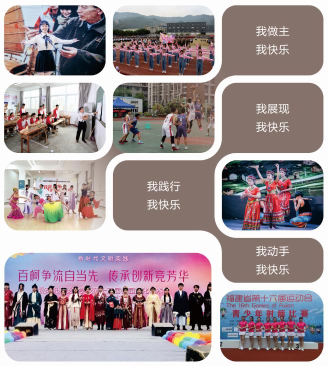 学校推行“我做主我快乐,我展现我快乐,我践行我快乐,我动手我快乐”的“四乐四心”快乐德育新模式,通过开展丰富多彩的学生社团、"四节"、 校外德育基地、社会实践、青年志愿者、文明风采竞赛等快乐德育活动,培养学生的自立心、自信心、自尊心、自强心,让学生在实践活动中体验成功。