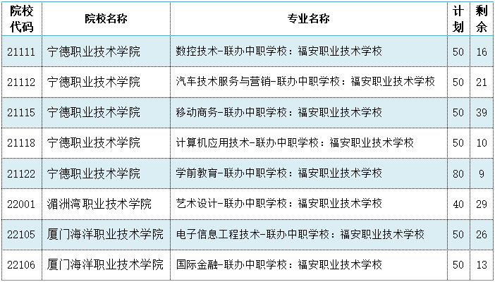 3.福安职业技术学校2021年五年制高等职业教育剩余计划指标