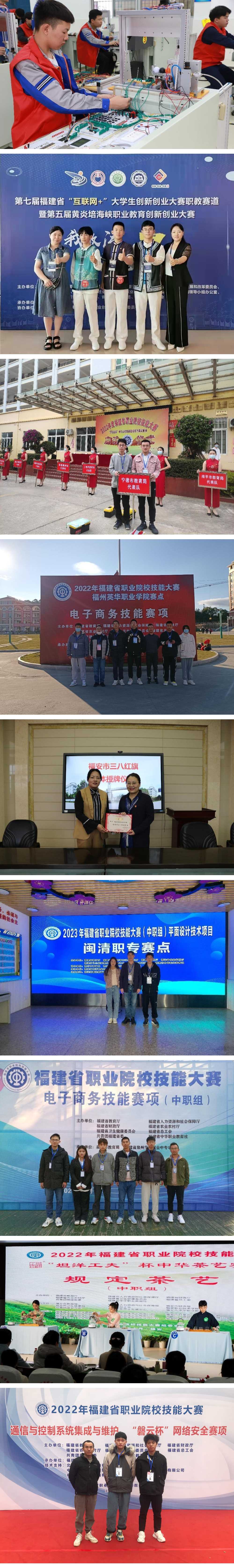 学校创新管理,严谨治学,注重培养学生的专业技能和职业精神。学生在技能大赛、创新创业大赛、科技创新大赛和文明风采大赛中喜讯频传、成绩斐然,三年来获省赛三等奖以上108人次,数字中国创新大赛数字智造赛道国赛三等奖1个,第七届福建省“互联网+”创新创业大赛职教赛道金奖1个,单片机控制装置与调试省赛一等奖1个,连续两年获福建省职业院校技能大赛中华茶艺一等奖4个。